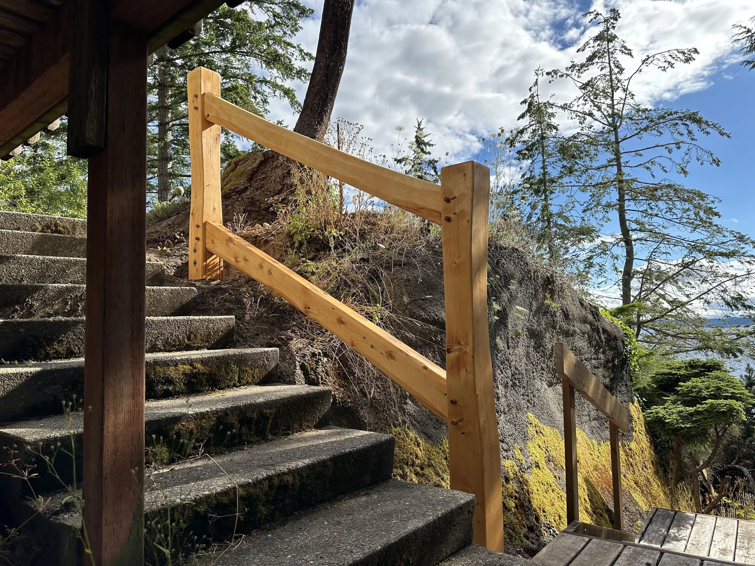 From full-scale structures to detailed features like the Alaskan Yellow Cedar stair railing shown below, we bring expertise and artistry to every piece. Whether you're building from the ground up or adding unique accents, our services are priced to provide high-quality work that fits your budget.